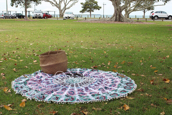 El verano pasado descubrí en Instagram unas mantas para la playa con diseños y colores que me llamaron la atención, averiguando encontré que las puedes comprar buscando en Instagram con el hashtag #Roundie o puedes visitar la web de Etsy (mi lugar favorito si de artículos hechos a mano se trata) Bueno los precios no son baratos, pero el hermoso diseño creo que vale la pena hacer un esfuerzo, lo malo es que el costo de envío incrementa sustancialmente su valor original, pero siempre se puede encontrar una solución y al ser un artículo hecho a mano te queda la opción de hacerlo tu misma o mandarlo a hacer.